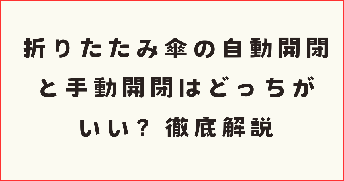 折りたたみ傘を選ぶとき、「自動開閉か手動開閉か」で悩んだことはありませんか?私も以前は「自動開閉がカッコいい!」と思っていましたが、実際に使ってみると意外な発見があり、選び方が変わりました。