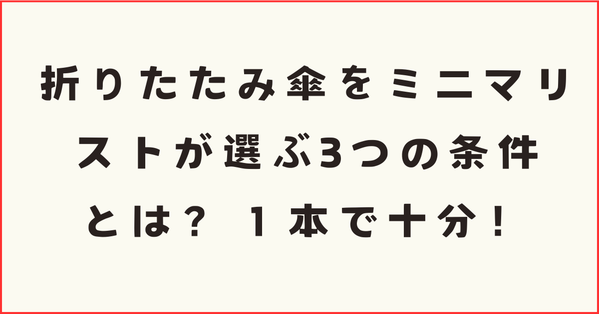 そこで今回は、ミニマリストが選ぶべき折りたたみ傘の3つの条件について、詳しくご紹介します。