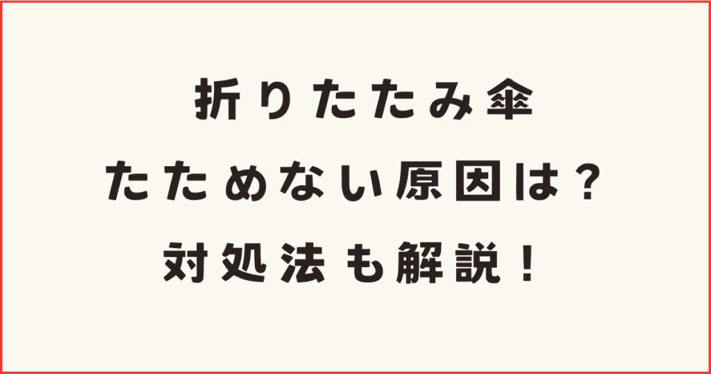 折りたたみ傘がたためなくなっちゃった… 閉まらないし、修理できるかな? 折りたたみ傘って便利だけど、たためなくなると本当に困りますよね。でも、意外と簡単に直せることも多いんです。原因を知って適切に対処すれば、また使えるようになるかもしれませ... -