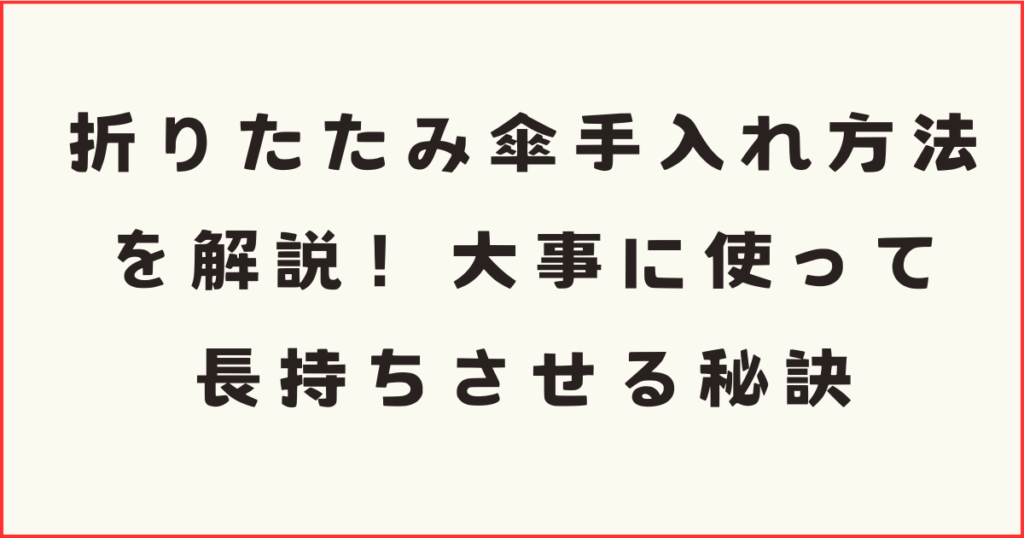 折りたたみ傘の手入れ方法がわからない…。 長持ちさせる方法を知りたいなぁ。 毎日使う折りたたみ傘だからこそ、きちんとケアしたいですよね。でも、正しい手入れ方法がわからず、困っている人も多いのではないでしょうか。 そこで今回は、折りたたみ傘の...